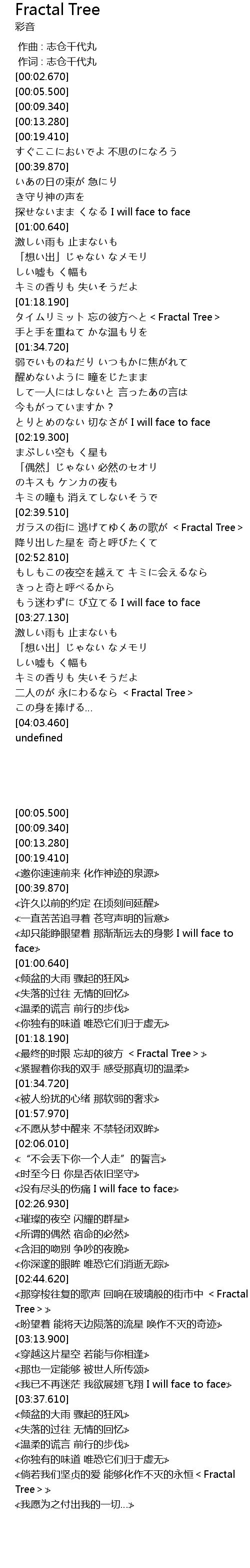 | [03:49.930] | 二人のが 永にわるなら <Fractal Tree> |