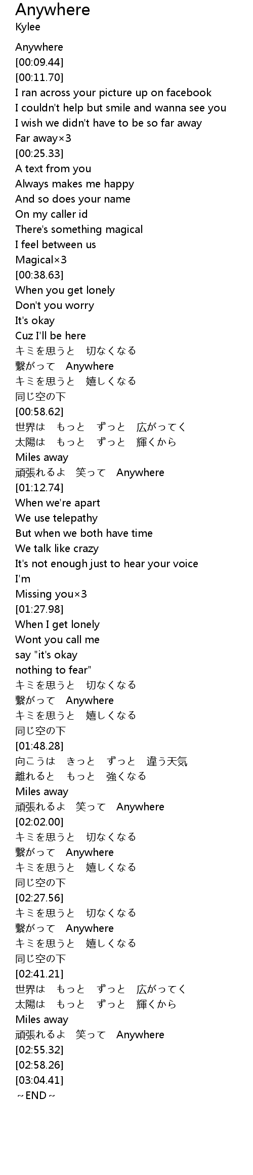 | [00:00.00] | Anywhere |
