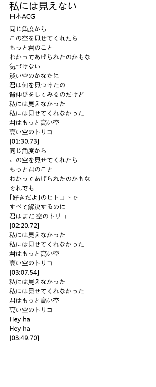 | [03:03.34] | 高い空のトリコ |