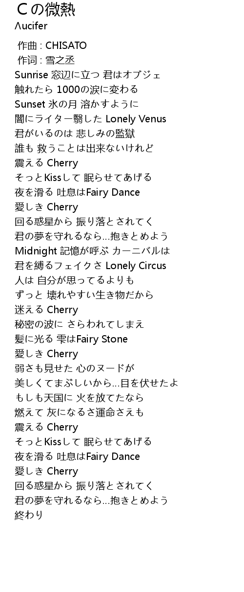 | [01:59.41] | 君を縛るフェイクさ Lonely Circus |