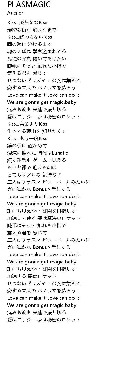 | 歌曲 | PLASMAGIC |