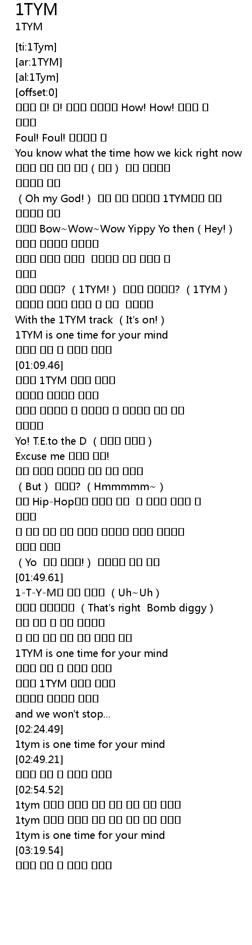 | [00:58.96] | With the 1TYM track (It's on!) |