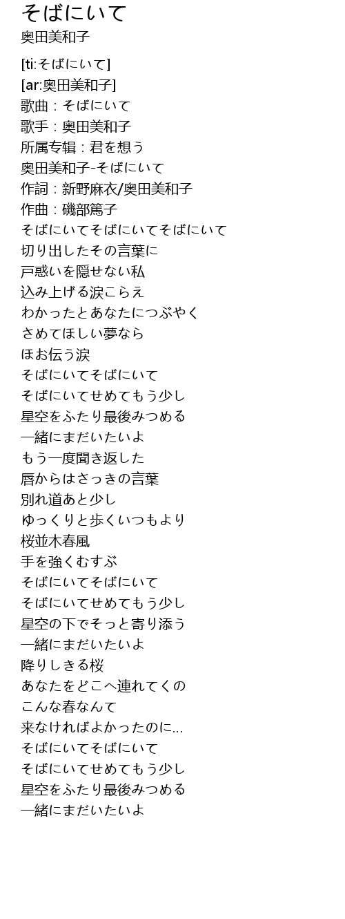| [00:09.44] | そばにいてそばにいてそばにいて |