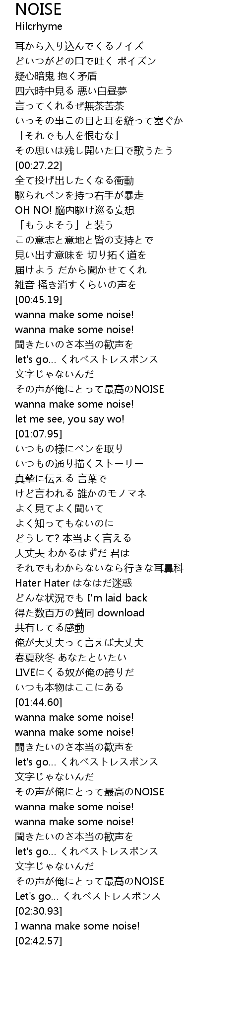 | [02:18.04] | その声が俺にとって最高のNOISE |