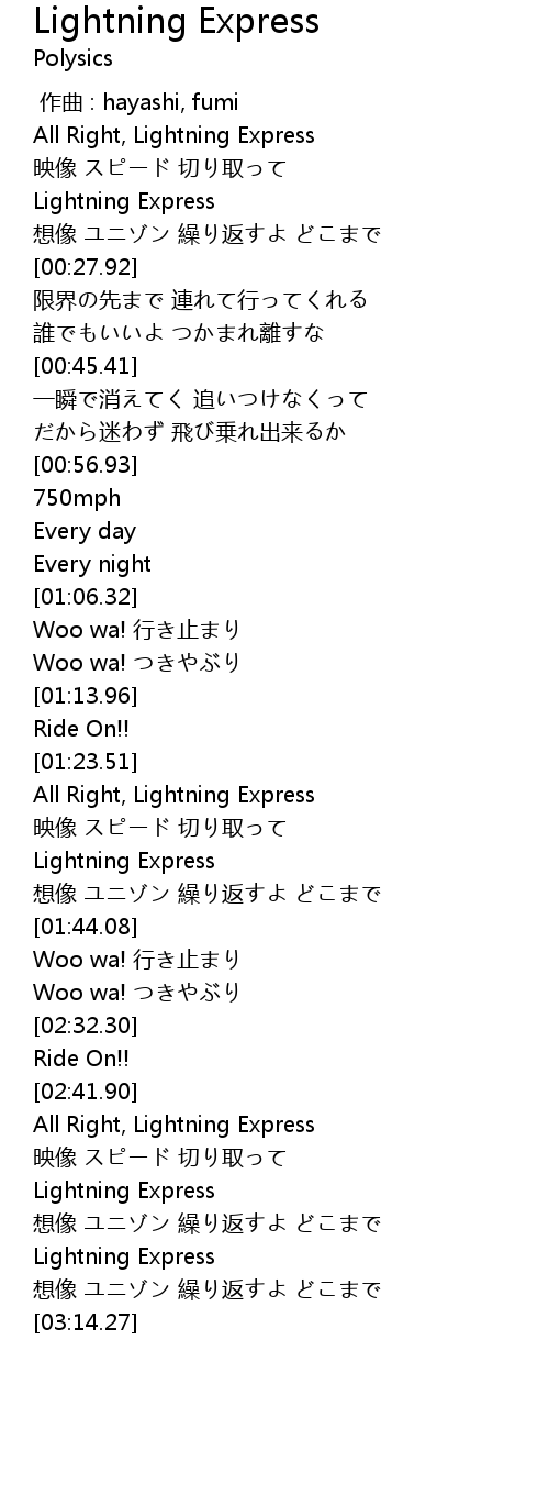 | [00:00.00] | 作曲 : hayashi, fumi |