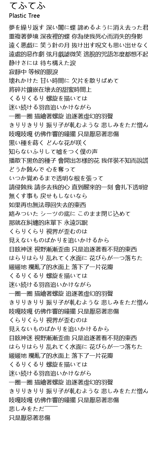 | 重複著夢境 深夜裡的蝶 你為使我死心而消失的身影 | |