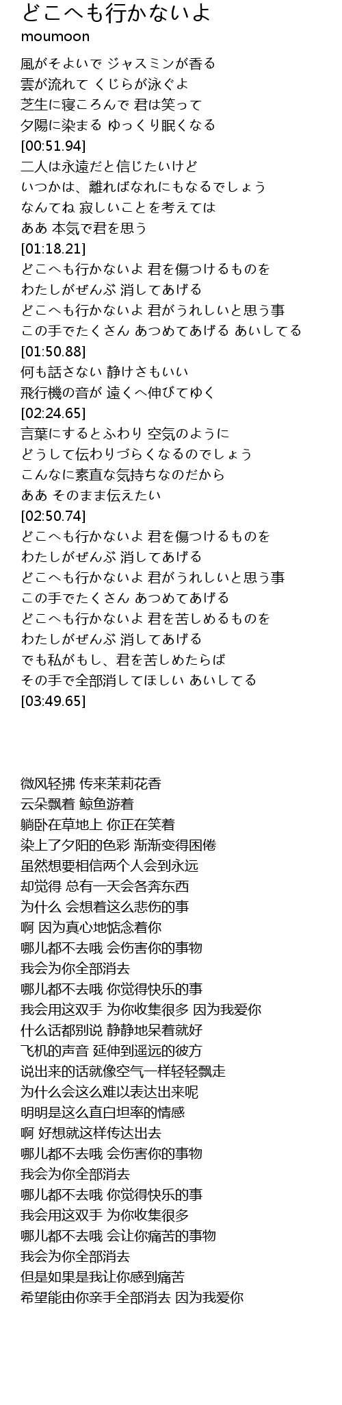 | [02:53.57] | 哪儿都不去哦 会伤害你的事物 |