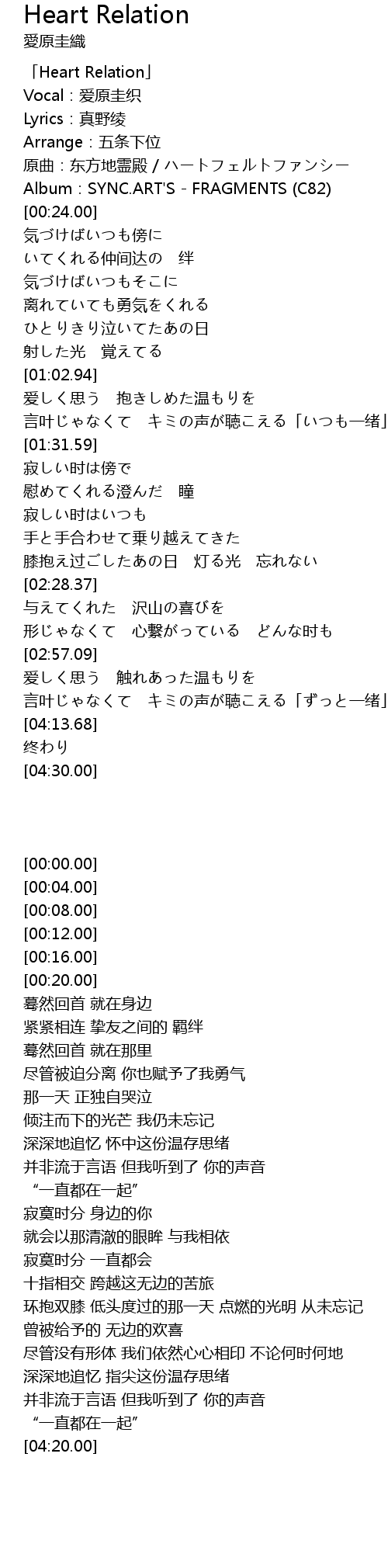 | [00:20.00] | Album:SYNC.ART'S - FRAGMENTS (C82) |