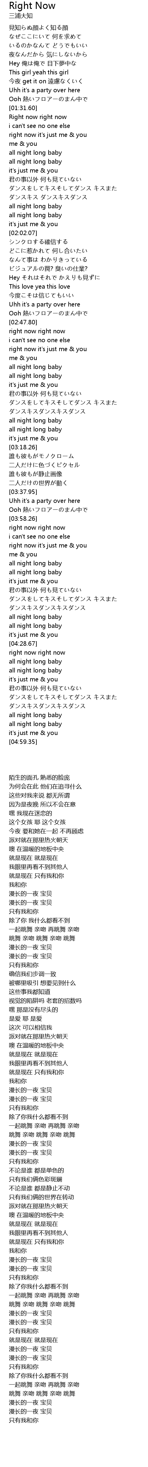 | [01:32.32] | Right now right now |