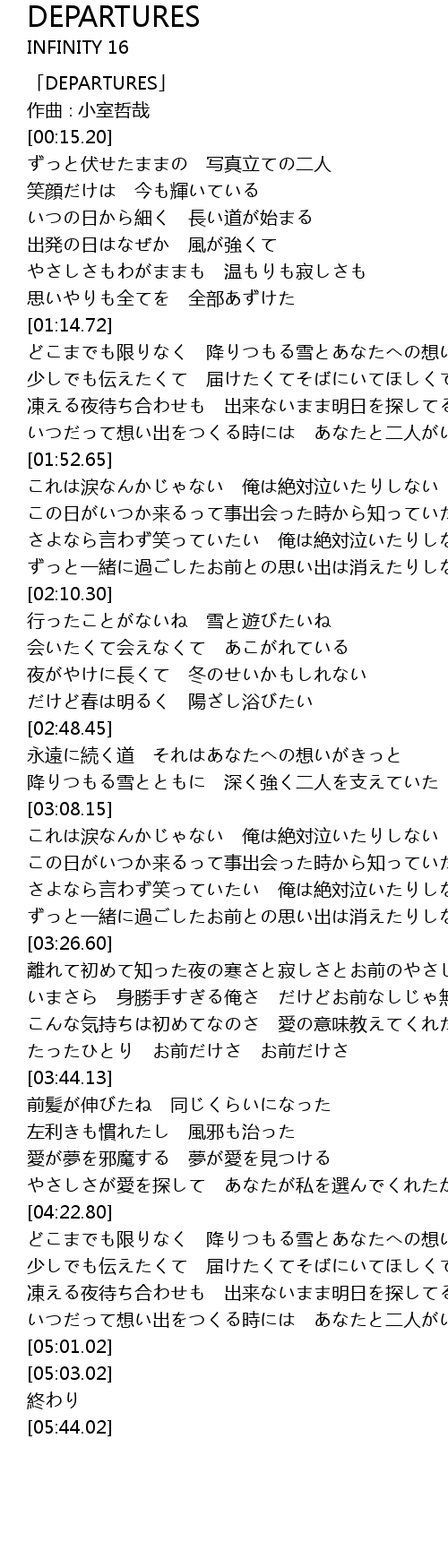 | [00:00.20] | 「DEPARTURES」 |