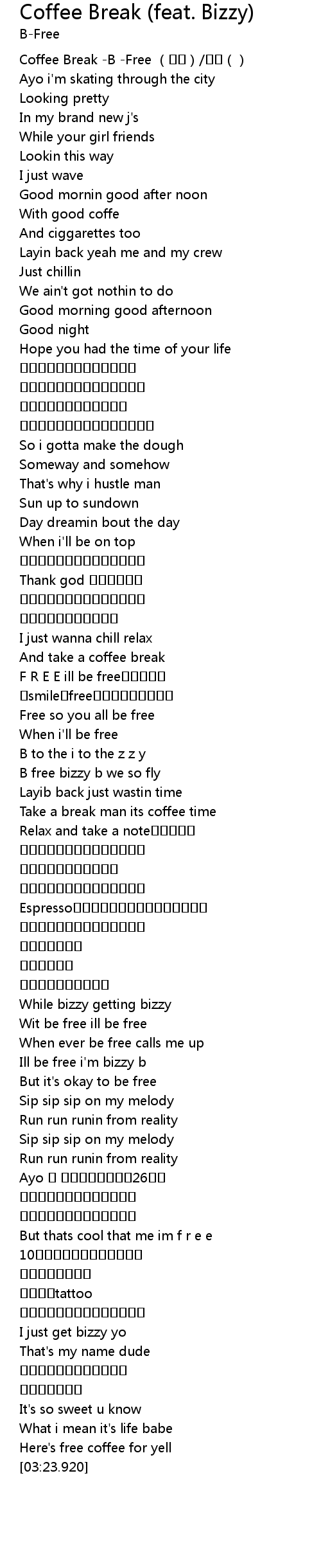 | [00:00.00] | Coffee Break B Free |
