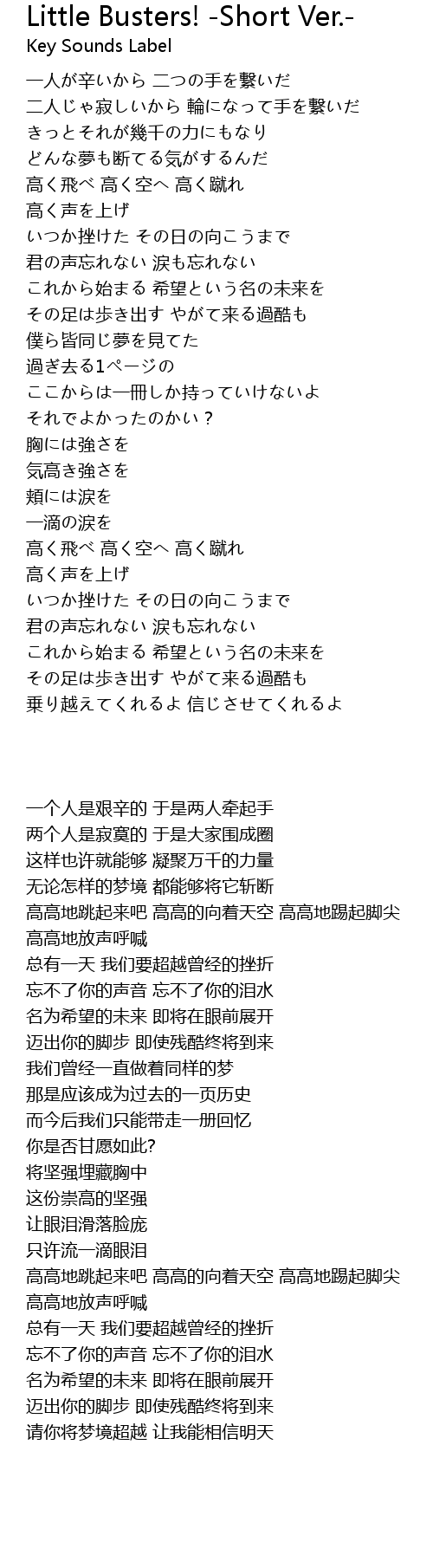 | 歌曲 | Little Busters! -Short Ver.- |