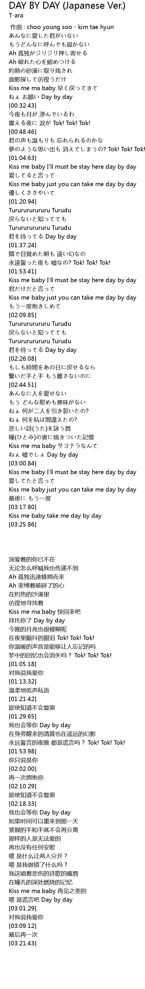 | [03:01.29] | Kiss me baby I' ll must be stay here day by day |