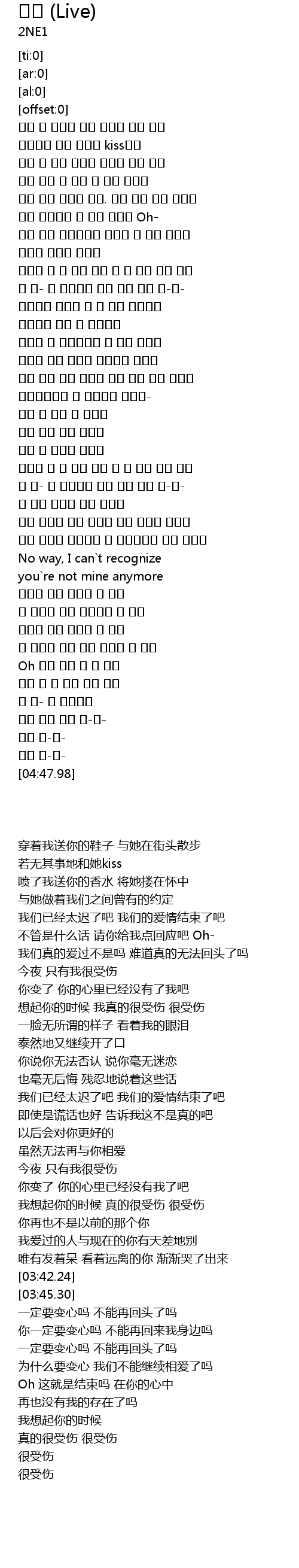 | [03:54.44] | 꼭 변해야 했니 돌아와줄 순 없니 |