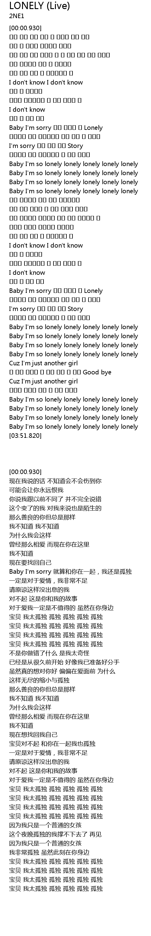 | [01:12.750] | Baby I' m so lonely lonely lonely lonely lonely |