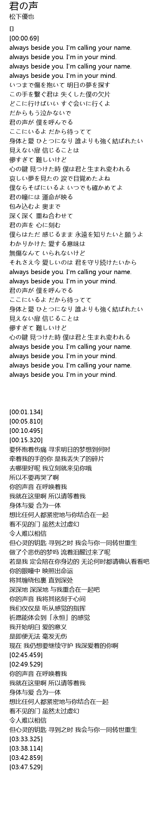 | [00:01.134] | always beside you. I' m calling your name. |