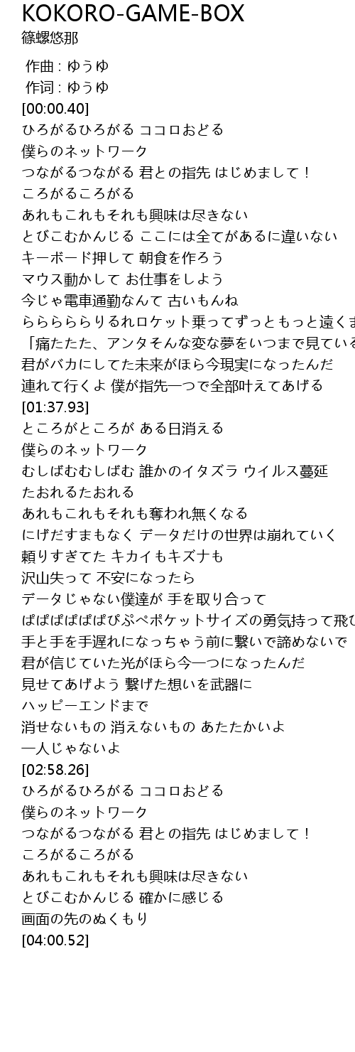 | 歌曲 | KOKORO-GAME-BOX |
