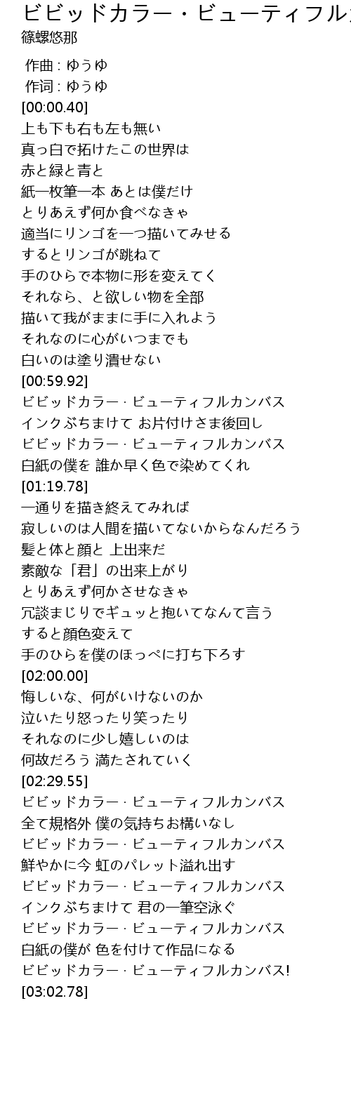 | [02:52.52] | ビビッドカラー · ビューティフルカンバス |
