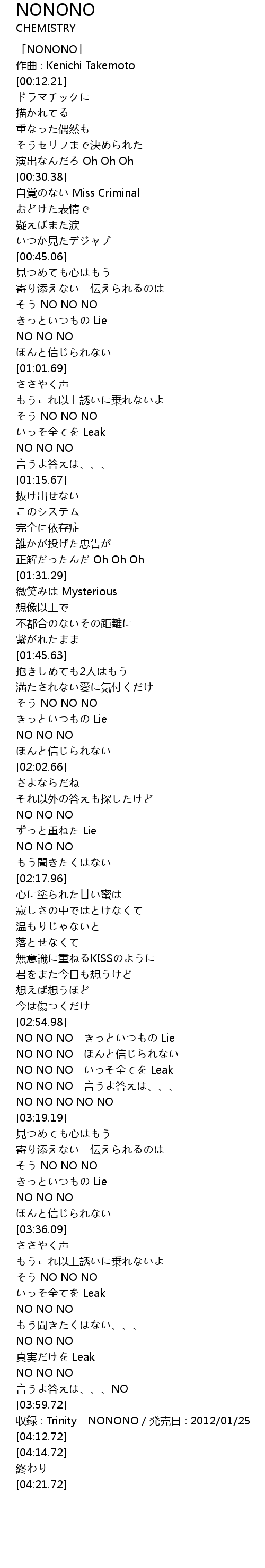 | [04:10.72] | shōu lù Trinity NONONO fā mài rì 2012 01 25 |
