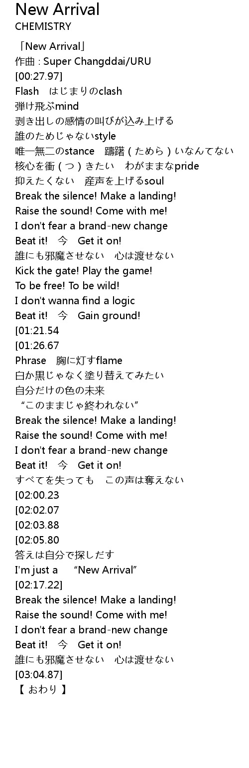 | [03:01.08][01:26.67] | I'm just a “New Arrival” |