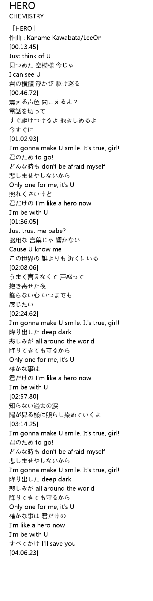 | [01:04.12] | I'm gonna make U smile. It's true, girl! |