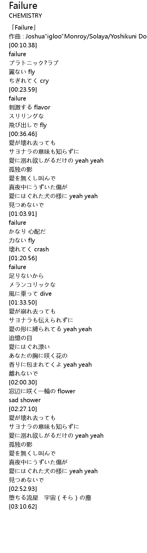 | [00:01.38] | 「Failure」 |