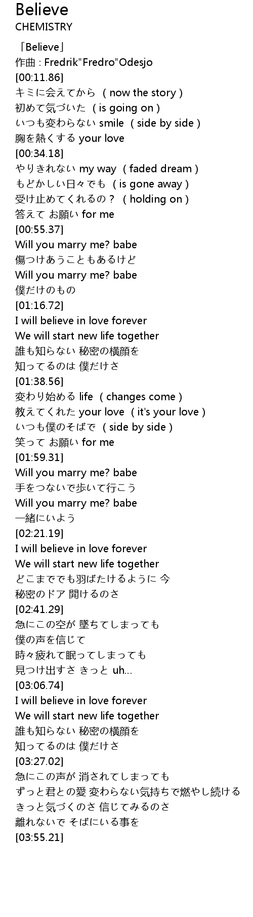 | [03:40.85] | きっと気づくのさ 信じてみるのさ |