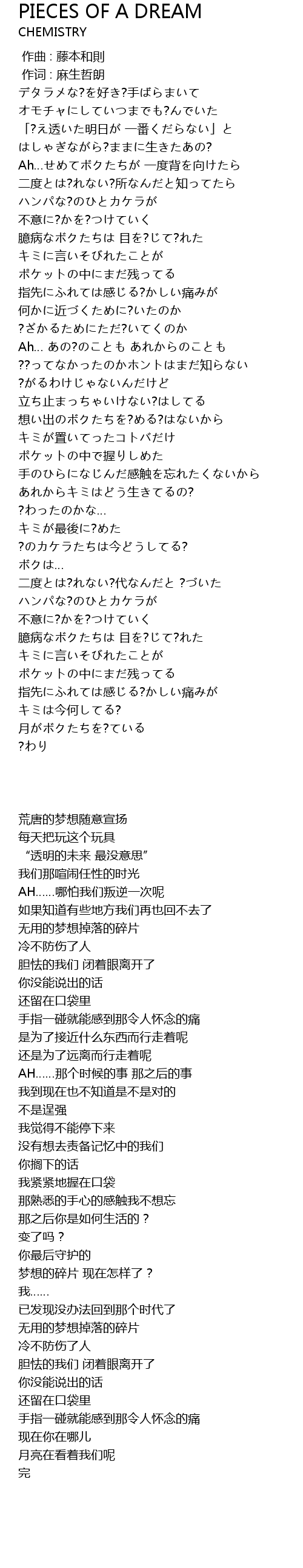 | [03:51.35] | 梦想的碎片 现在怎样了? |