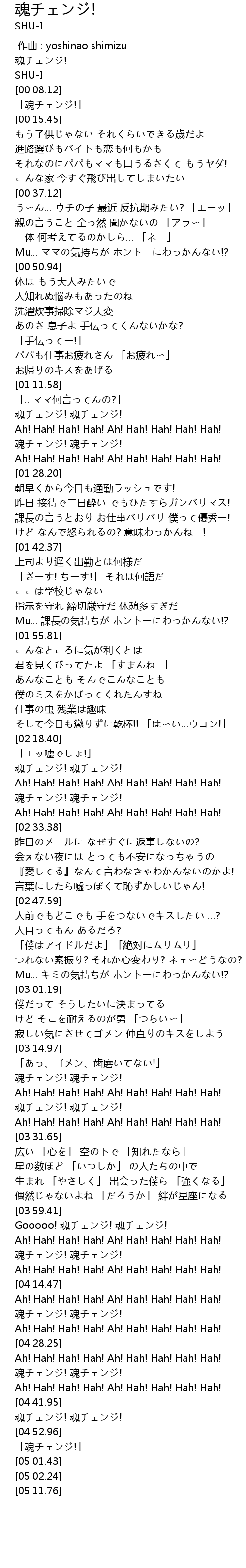 | [00:11.53] | 「魂チェンジ!」 |