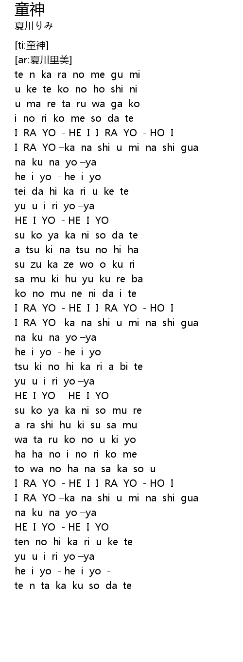 | [00:51.499] | I RA YO -HE I I RA YO -HO I |