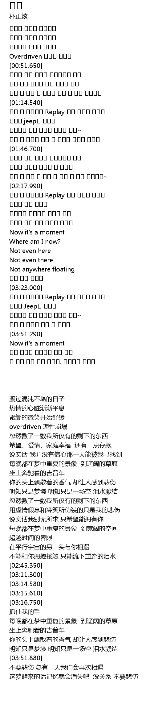 | [00:46.470] | Overdriven 이성을 놓치네 |