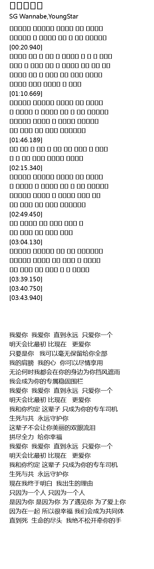 | [00:02.959] | 我爱你 我爱你 直到永远 只爱你一个 |