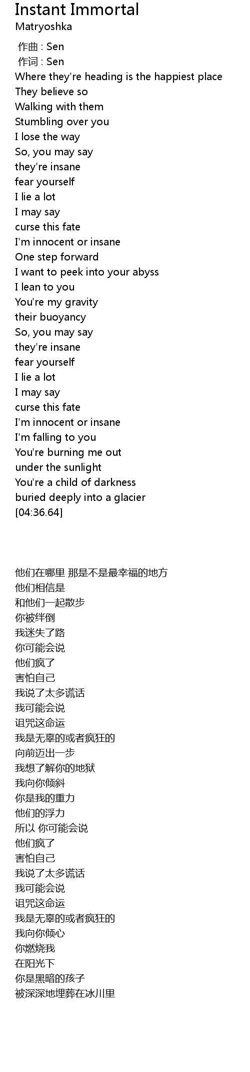 | 歌曲 | Instant Immortal |