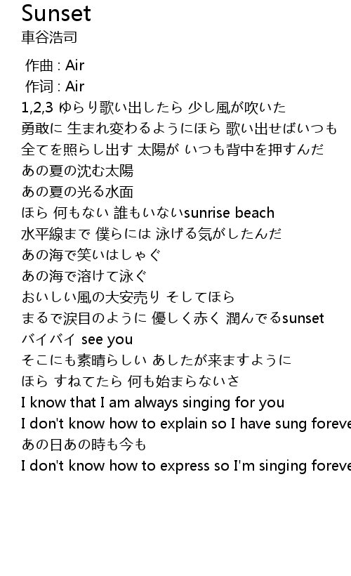 | [02:06.67] | まるで涙目のように 優しく赤く 潤んでるsunset |