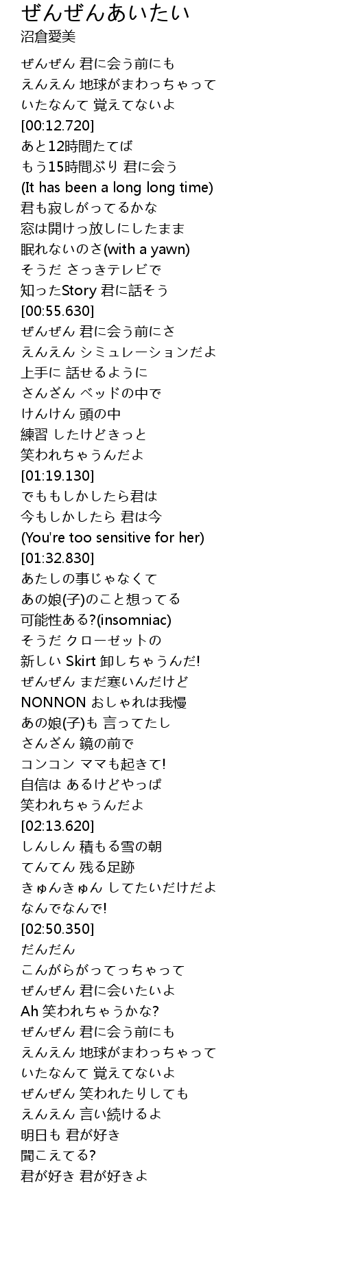 | [02:53.190] | ぜんぜん 君に会いたいよ |