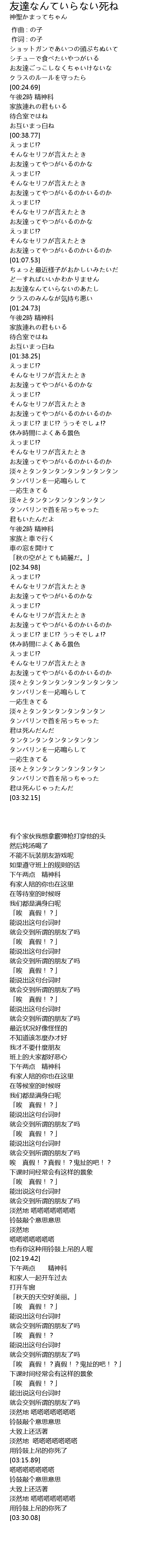 | [02:03.47] | お友達ってやつがいるのかいるのか |