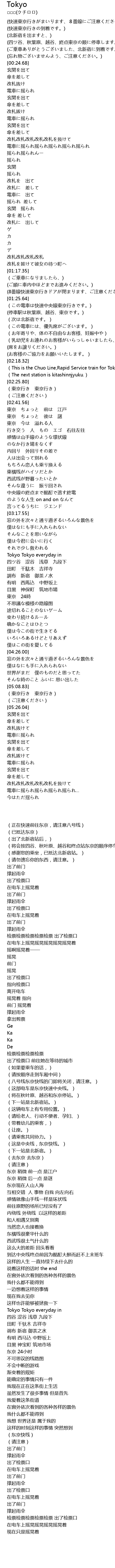 | [00:09.45] | (四ツ谷、秋葉原、越谷、終点東京の顺に停車します。) |