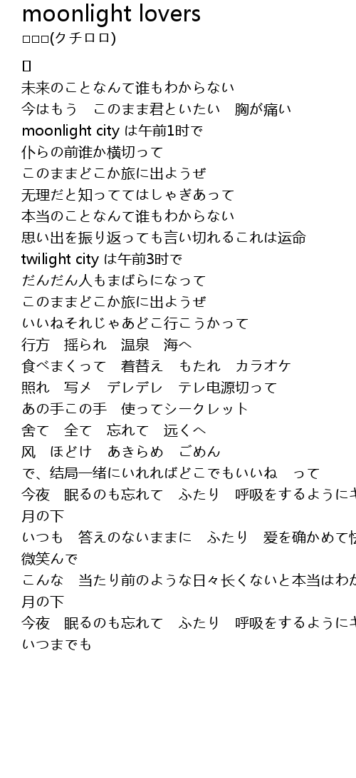 | いつも 答えのないままに ふたり 爱を确かめて怯えてる | |