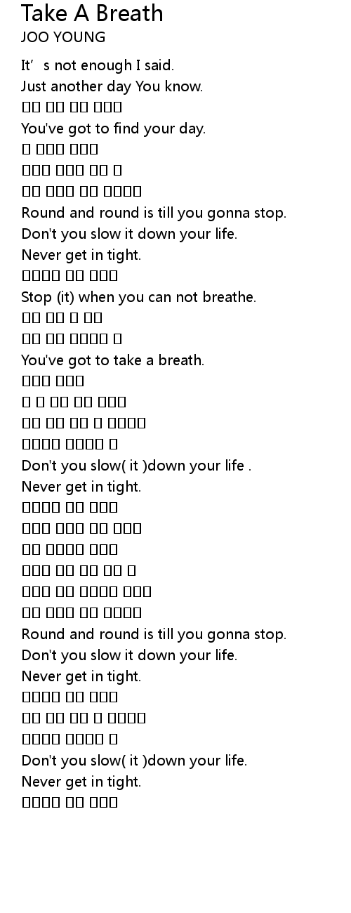 | [01:40.340] | Stop (it) when you can not breathe. |