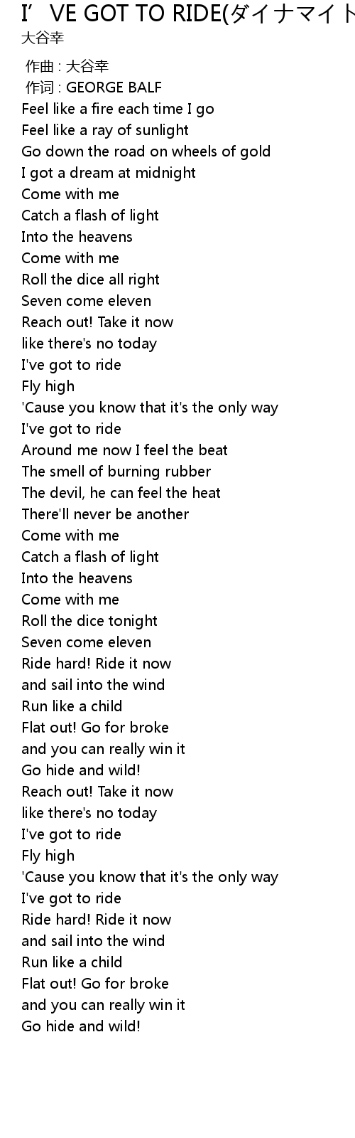 | [01:52.66] | Ride hard! Ride it now |
