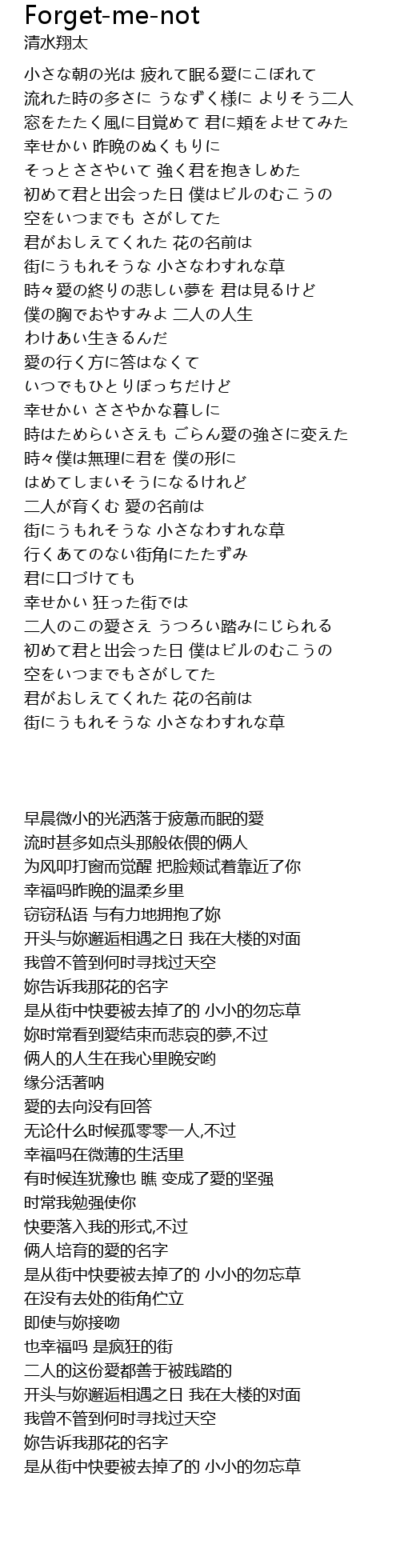 | [03:54.150] | 是从街中快要被去掉了的 小小的勿忘草 |