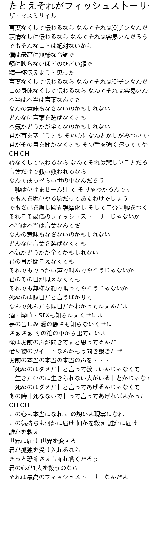 | 君の心が1人を救うのなら それは最高のフィッシュストーリーなんだよ |