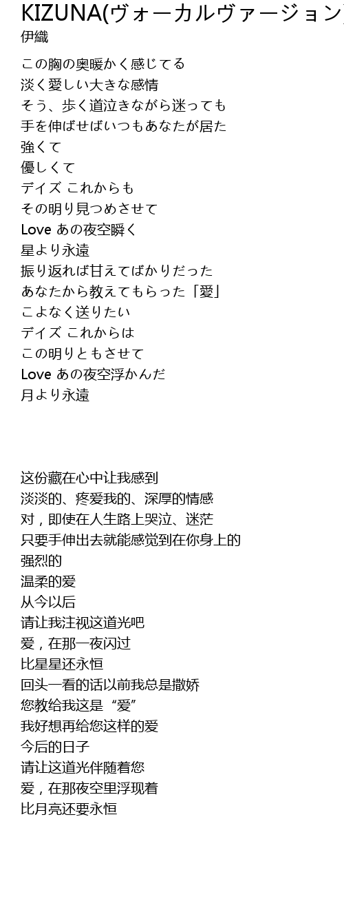 | 歌曲 | KIZUNA(ヴォーカルヴァージョン) |