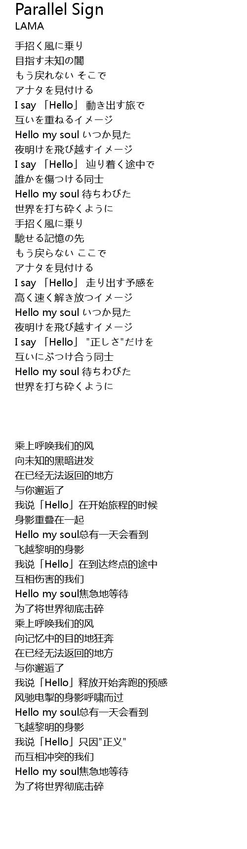 | [02:52:55] | 我说「Hello」释放开始奔跑的预感 |