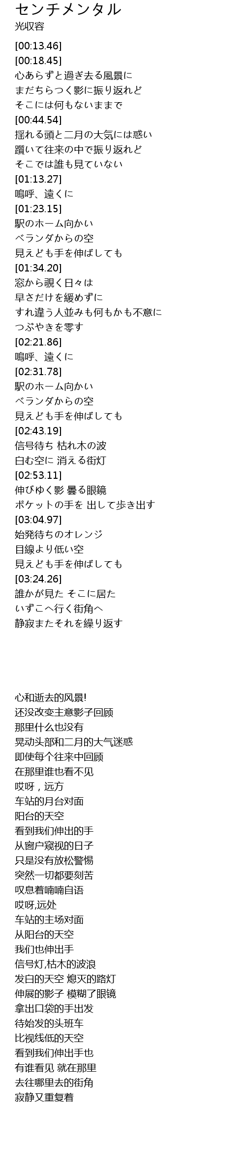 | [02:53.34] | 伸びゆく影 曇る眼鏡 |