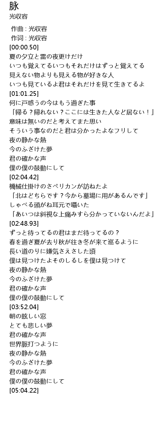 | [03:42.59] | 僕の僕の鼓動にして |