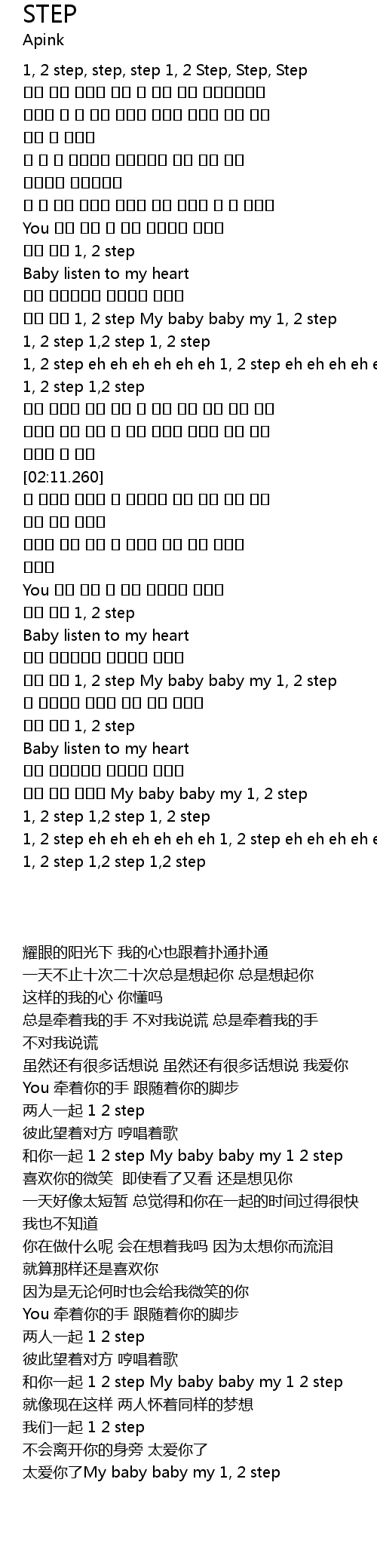 | [02:47.840] | 너와 함께 1, 2 step My baby baby my 1, 2 step |