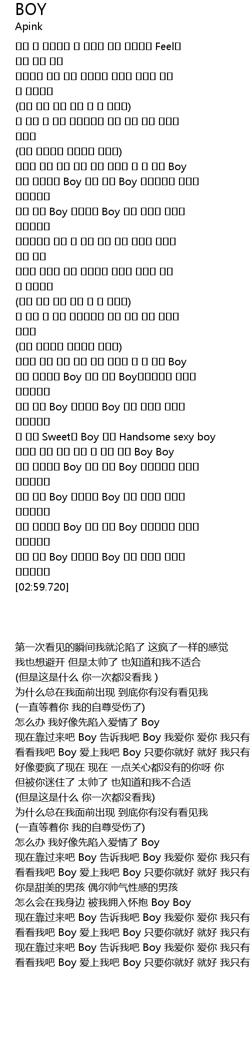 | [02:29.000] | 现在靠过来吧 Boy 告诉我吧 Boy 我爱你 爱你 我只有你 |