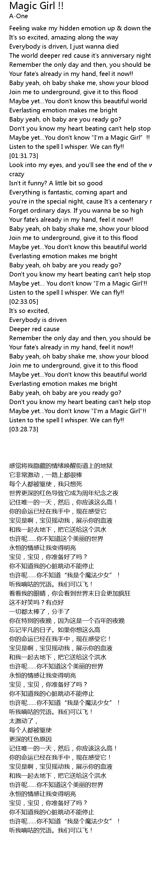 | [01:25.54] | Maybe yet…You don't know "I'm a Magic Girl”!! |