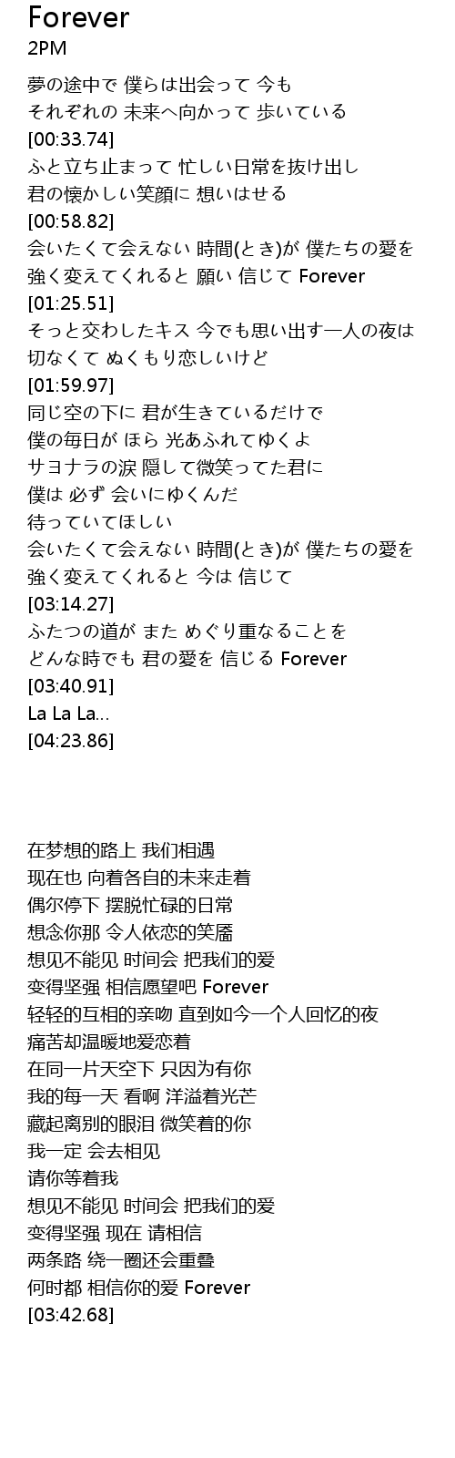 | [03:26.99] | 何时都 相信你的爱 Forever |